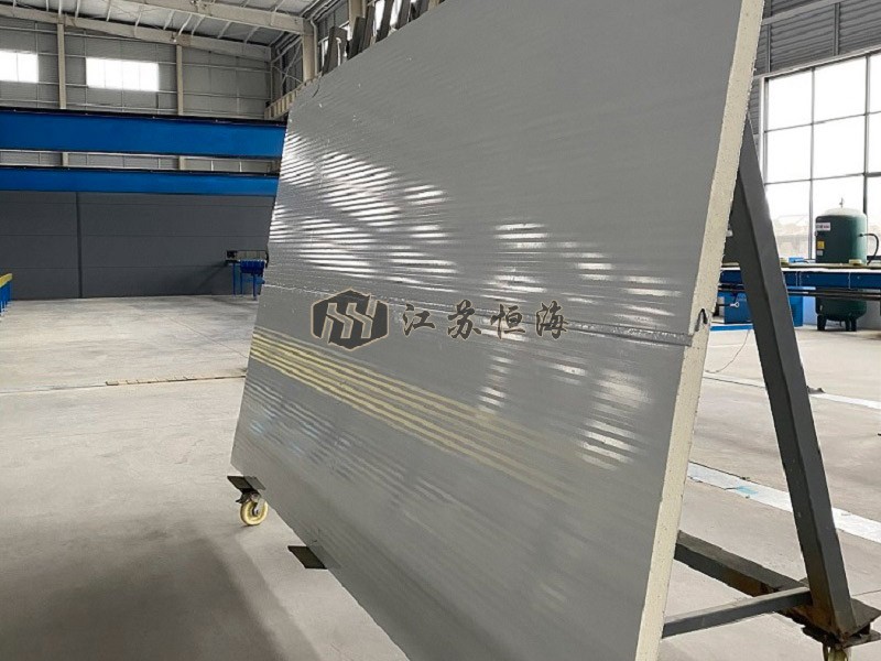 該板由高品質(zhì)彩涂鋼材連續(xù)冷彎成型,中間注入保溫阻燃型聚氨酯液體,經(jīng)高壓混合、發(fā)泡、固化等工藝加工后,芯材與面材強(qiáng)力復(fù)合而成。整套生產(chǎn)流程由聚氨酯連續(xù)自動(dòng)生產(chǎn)線在線完成。