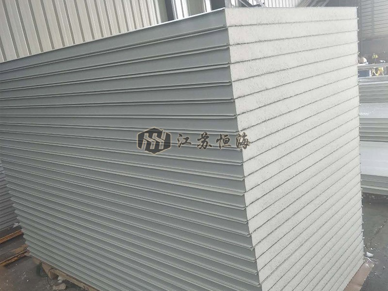 該板由高品質(zhì)彩涂鋼材連續(xù)冷彎成型,中間注入保溫阻燃型聚氨酯液體,經(jīng)高壓混合、發(fā)泡、固化等工藝加工后,芯材與面材強(qiáng)力復(fù)合而成。整套生產(chǎn)流程由聚氨酯連續(xù)自動生產(chǎn)線在線完成。