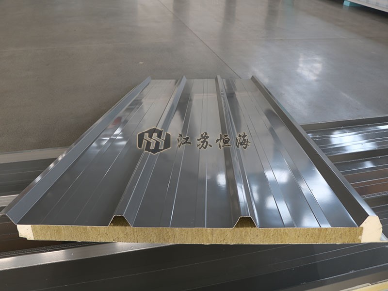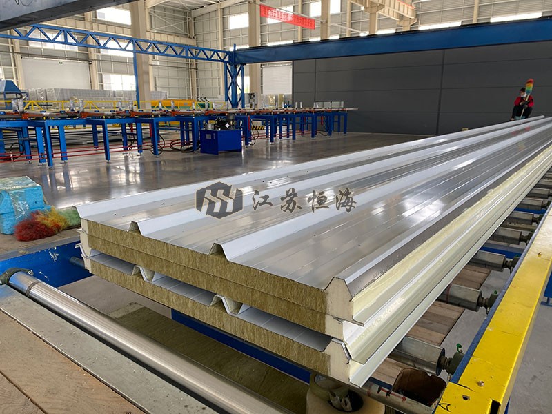 該板由高品質(zhì)彩涂鋼材連續(xù)冷彎成型,中間注入保溫阻燃型聚氨酯液體,經(jīng)高壓混合、發(fā)泡、固化等工藝加工后,芯材與面材強(qiáng)力復(fù)合而成。整套生產(chǎn)流程由聚氨酯連續(xù)自動生產(chǎn)線在線完成。