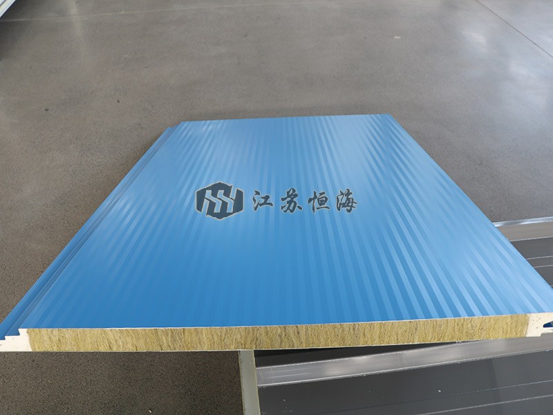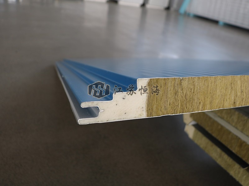 3.強(qiáng)度優(yōu)良:聚氨酯封邊巖棉板材料與兩層鋼板一體粘合,在共同作業(yè)的基礎(chǔ)上,再從頂板的上面加入波壓模具。其整體的剛度與夾有壓模夾板的巖棉(玻璃絲棉)的現(xiàn)場(chǎng)的復(fù)合板材相比相差甚遠(yuǎn)。通過連接條和板卡進(jìn)行固定,大幅提高了頂面整體的剛性,強(qiáng)化了頂面整體的工作性能。因?yàn)檫x擇巖棉的芯板,能采用大的螺距,能節(jié)約分片量的1/3 ~ 2/3。